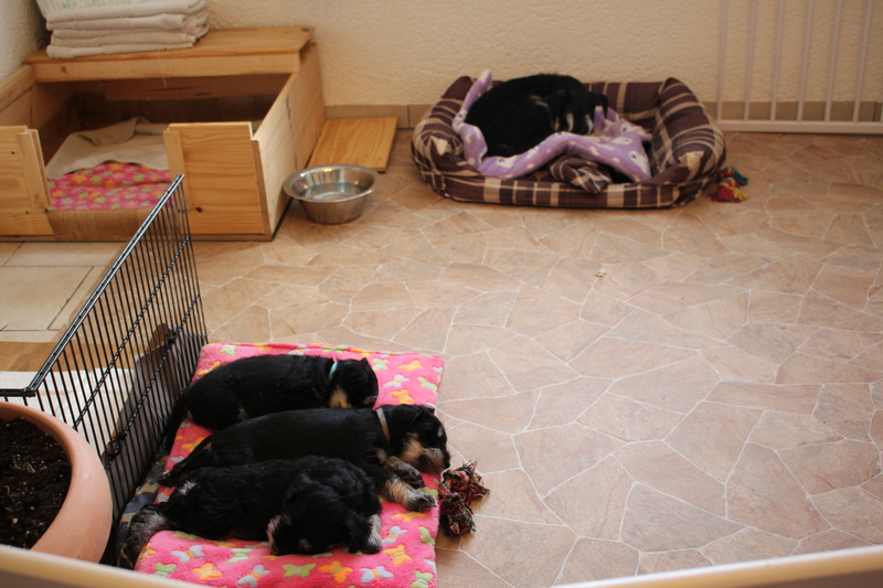 Unsere Mama Colleen hat von 11.30 Uhr bis 15.30 Uhr 4 Welpen zur Welt gebracht. Glückwunsch auch an den Papa, Bosco von Sankt Sylvestries. Leider hat es das erste Mädchen "Arabella" nicht geschafft, sie war viel zu klein und ist nach ein paar Stunden gestorben.